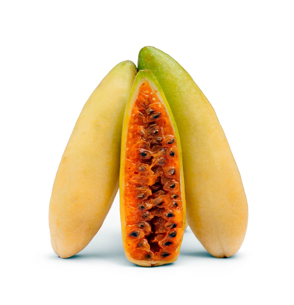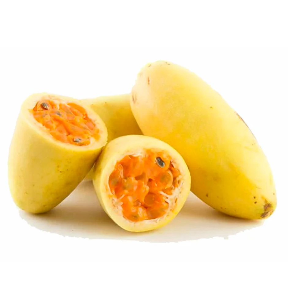 La curuba, también conocida como banana passionfruit, es una fruta andina de forma alargada, con una pulpa anaranjada, suave y ligeramente ácida. Su sabor mezcla notas cítricas y dulces que la hacen perfecta para jugos, postres, helados o incluso platos salados.